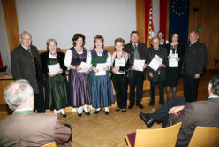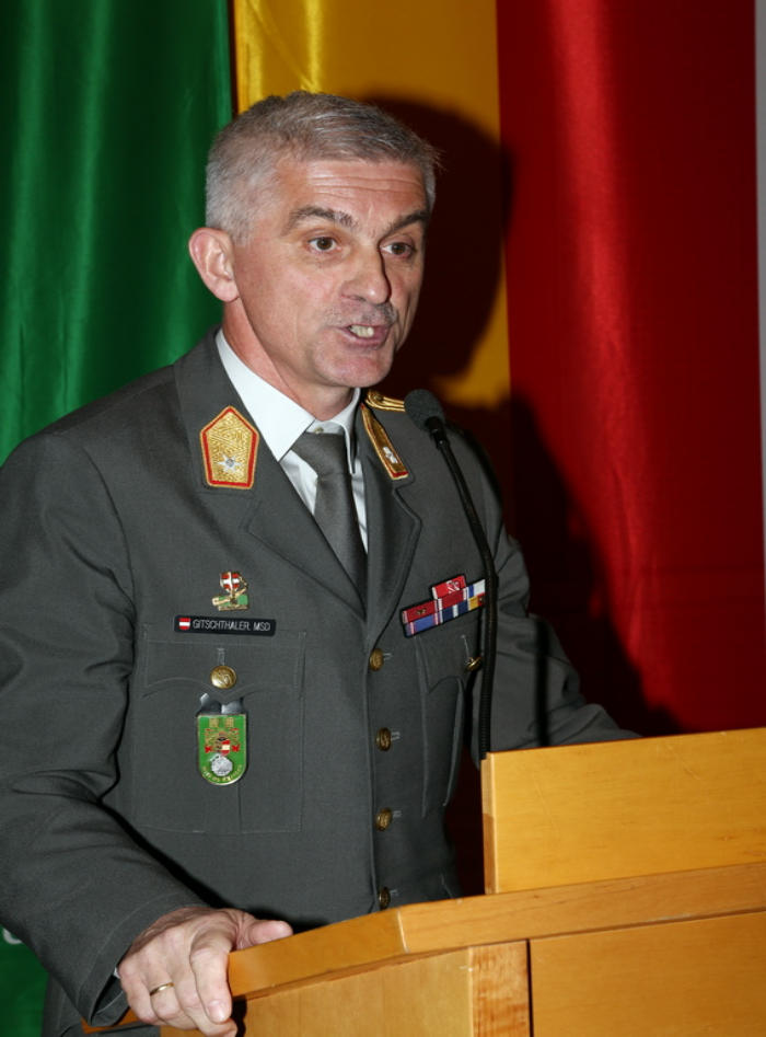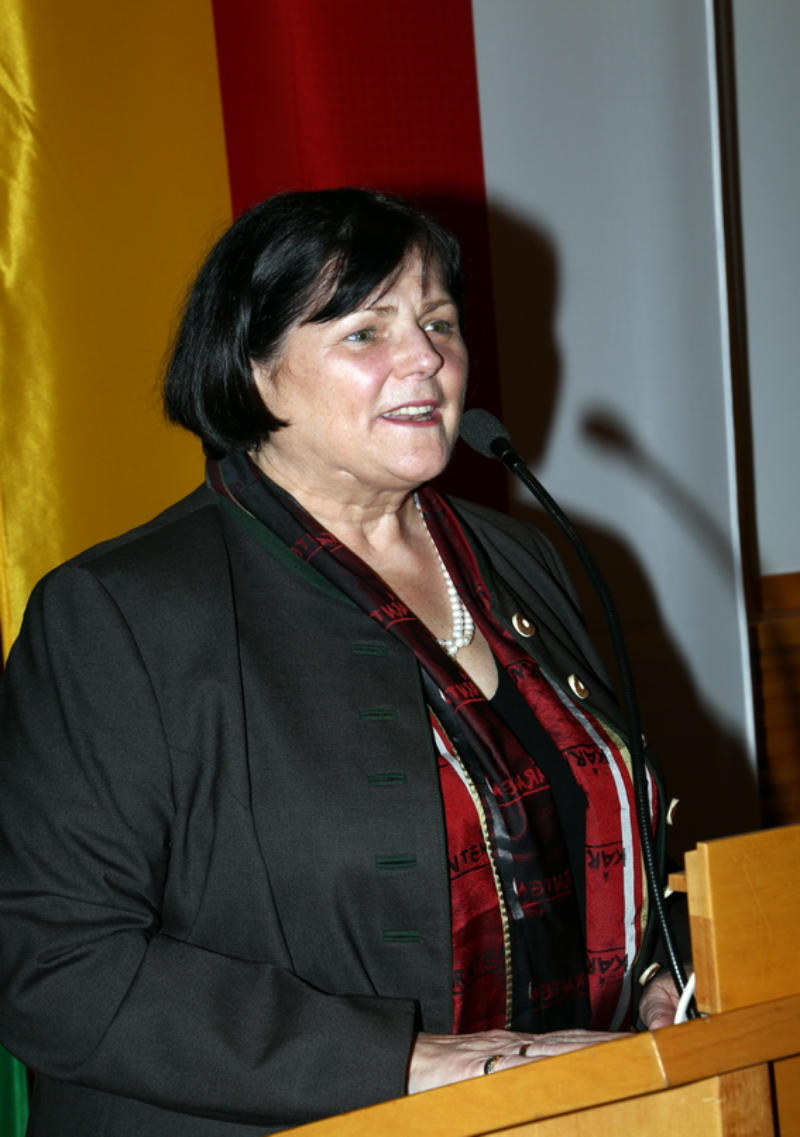 Die nun folgenden Grußworte unserer Ehrengäste betonten einmal mehr die Notwendigkeit von Tradition und Brauchtumspflege, die in der Kärntner Landsmannschaft einen sicheren Hort finden. Die Festredner unterstrichen die vielen Facetten der in der KLM vertretenen Gruppen und überbrachten Dankesworte.           Die Polizeidirektorin  Dr. Michaela Kohlweiß ging auf das Thema Sicherheit näher ein  und erläuterte die Grundgedanken zur Schließung von Kärntner Polizeiinspektionen.       Der Militärkommandant von Kärnten, Brigadier Walter Gitschtaler zeichnete ein  sehr reelles Bild der Situation des Bundesheeres. Seine aussagekräftige Festrede  führte eindringlich Probleme und Sorgen, aber auch die Möglichkeiten des Militärs  vor Augen. Die von den Zuhörern mit großem Interesse bedachten Ausführungen  werden wir Ihnen im Heft 9-10 2014 im Druck zur Kenntnis bringen.    Dank und Anerkennung gab es bei den Ehrungen, die Dr. Heimo Schinnerl mit würdigenden Worten einleitete. Wie alljährlich durften wir eine ganze Reihe von Persönlichkeiten aber auch Gemeinden ehren. Weiter Zurück