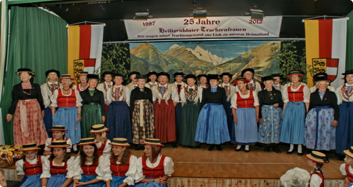 Die starke Gruppe der Heiligenbluter Trachtenfrauen am Fuße des Großglockners tut für den bekannten, hochalpinen Ort sehr viel, das reicht von der Kräuter- bis zur Fleischweihe. Sie kümmern sich um die Weiterbildung, veranstalten Kärntner Abende und haben mit der Errichtung des "Frauenkreuzes" als dritter Fronleichnamsstation ein Zeichen gesetzt. 2022 übergab die langjährige Obfrau Frau Erika Traun an Frau Uta Pichler die Führung dieser starken Gemeinschaft. Quelle: “Erlebnis Tracht” von W. Lattacher u.S. Kogler