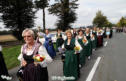 Grafensteiner Tracht: Bodenlange Wollstofftracht mit eleganter Bortenzier. Dazu wird eine Bodenhaube mit gesticktem Ährenmotiv getragen.