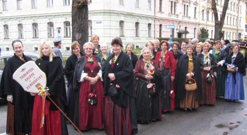 30 Jahre Trachtengruppe Stadt Klagenfurt der Kärntner Landsmannschaft Erna   Nettek,   als   Gründungsobfrau   und   der   damalige   Obmann   der   Kärntner   Landsmannschaft   Ing.   Sepp Prugger   haben   1982   die   Trachtengruppe   Stadt   Klagenfurt   ins   Leben   gerufen.   Im   Jahre   1991   wurde   Ilse Schöffmann   zur   Obfrau   gewählt,   von   1997   bis   2005   stand   Erna   Kopeinig   in   dieser   Funktion.   Seit   2005 steht   nun   wieder   Ilse   Schöffmann   der   Gruppe   vor,   die   derzeit   aus   16   aktiven   und   24   unterstützenden Mitgliedern   besteht.   Die   Gruppe   steht   interessierten   Damen   als   neuen   Mitgliedern   -   die   allerdings   ein   wenig Zeit einbringen sollten - jederzeit offen. Die drei Schwerpunkte der Vereinstätigkeit bieten sehr viel Interessantes und Schönes: *    Pflege    der    Gemeinschaft    bei    monatlichen    Zusammenkünften,    Kulturfahrten    und    die    Teilnahme    an zahlreichen           Veranstaltungen           (Festzüge,           Landestrachtentreffen,           Kärntner           Kirchtag, Fronleichnamsprozessionen).   Auch   die   unterstützenden   Mitglieder   werden   hierzu   immer   wieder   gerne eingeladen. *   Pflege   von   Tracht   und   Brauchtum   ist   ein   wichtiger   Teil   des   Gruppenlebens   und   wird   durch   die   Teilnahme bei     verschiedenen     Anlässen     und     Festen     wie     z.     B.     Villacher     Kirchtag,     Gottscheer     Kirchtag, Kräutersegnungen, Kirchleintragen in Eisenkappel und Adventfeiern dokumentiert. *   Karitative   Aktionen   wie   Patenschaften   für   Kinder   und   Spenden   für   bedürftige   Familien   in   Kärnten   zeigen die   Verbundenheit   zu   den   Menschen   des   Landes,   wobei   die   Geldmittel   dafür   aus   den   alljährlichen Advent- und Ostermärkten stammen. Die   Gruppe   hat   im   Laufe   der   Jahre   schon   eine   Trachtenausstellung   organisiert,   einen   Bildstock   renovieren lassen   und   sich   an   der   Erneuerung   des   Grabmales   von   Johann   Ritter   Thaurer   von   Gallenstein   (dem Dichter des Kärntner Heimatliedes) beteiligt. Gerne   wird   die   Gemeinschaft   mit   anderen   Gruppen   gepflegt.   Drei   gemeinsame   Trachten   werden   mit   Stolz und    Freude    von    den    Damen    getragen.    Die    Rosentaler    Festtracht    mit    Spenzer,    Bodenhaube    und Gürtelkette   ist   das   Festkleid   für   große   Anlässe.   Als   Ergänzung   wird   die   Wörthersee-Sonntagstracht   mit dem    Mittelkärntner    Reindlhut    getragen    und    für    sommerliche    Gelegenheiten    wird    das    Klagenfurter Sommerdirndl angelegt. Im April   2012   wird   das   30-jährige   Gründungsjubiläum   festlich   begangen   werden.   Den   würdigen   Höhepunkt bildet eine gemeinsame Messe in St. Georgen am Sandhof mit einer   anschließenden   Feierstunde,   die   mit   einem   Mittagessen   und   einem   gemütlichen   Beisammensein ausklingen   wird.   Voller   Freude   auf   weitere   gemeinsame   Jahre   sieht   die   Trachtengruppe   Stadt   Klagenfurt   in die Zukunft. Ilse Schöffmann