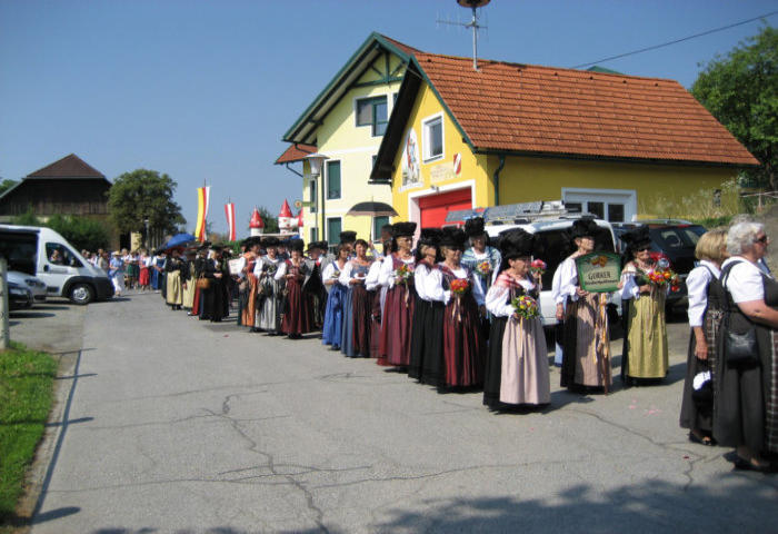 30 Jahre TrachtengruppeGroßbuch Der Großbucher Kirchtag wurde heuer wieder einmal richtig gefeiert. Rund   600   Teilnehmer   folgten   an   beiden   Tagen,   der   Einladung   der   Trachtengruppe   Großbuch,   unter   Obmann Walter Krainer, zu ihrem 30-jährigem Jubiläum. Am Sonntag wurde die Eucharistische Meßfeier und die Prozession, durch Pfarrer KR Prof. Dr. Herbert Felsberger, mit gesanglicher Unterstützung durch die "Stimmen der Polizei", zelebriert, an der ua. 10 Trachtengruppen, der Fahnenträger der Kärntner Landsmannschaft, Dietmar Nidetzky, ein Gardist der "kk-Gendarmerie 1898" mit Gert Seiser, eine Delegation des Bürgerkorps Strassburg, unter Hptm. Herbert Bischof, politische Vertreter und natürlich die "Dorfbewohner" teilnahmen. Am Nachmittag wurde auf "Buacharisch", mit den "Stimmen der Polizei", "Quartanima", der "KDS-Musi" und den "Tiebel Buam", die Anwesenden Gäste unterhalten. Hans Ogris mit seinen "Harmonika Schülern" überbrachte die "Großbucher Kirchtags Polka" als symbolisches Geschenk. Am Montag, beim Nachkirchtag, spielten die "Die4Lavanttaler" so richtig flott auf und durften ihren "Stargast" Anna-Maria Kaiser herzlich begrüßen, die der Gruppe 2014, in der ORF Entscheidung, mit dem Text der Lieder "A Liadle aus Kärnten" und "Unser Kärnten" sechs Wochen auf den ersten Platz "verhalf". fredy-b