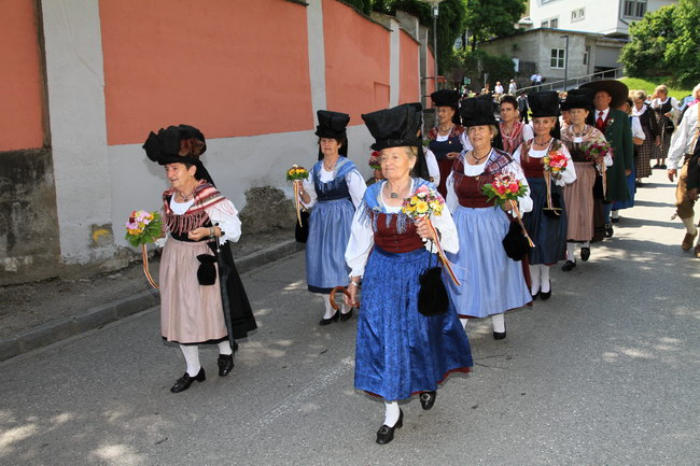 Die Frauen tragen die bodenlange Gurktaler Festtracht mit dem traditionellen Bänderhut.