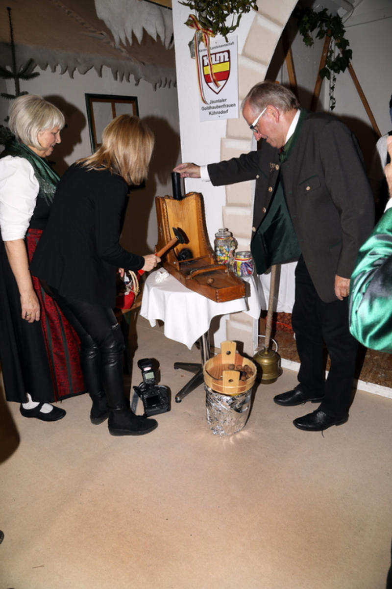 Die Jauntaler Goldhaubenfrauen Kühnsdorf mit Obfrau Maria Tarkusch sind ein Garant für gelebte Heimatliebe. Für sie steht das Traditionsbewusstsein an vorderster Stelle. Die Erinnerungen an die Zeit des Kärntner Abwehrkampfes werden hochgehalten. Seit über drei Jahrezehnten wird das dörfliche Kulturleben geprägt. Quelle: “Erlebnis Tracht” von W. Lattacher u.S. Kogler