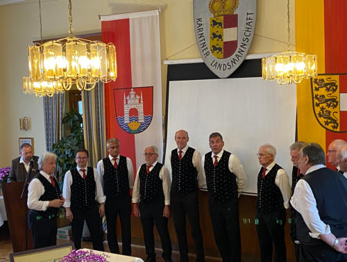 68. Mitgliederversammlung der Kärntner Landsmannschaft Velden Überraschungsehrung für Ehrengast und Chorleiter Horst Moser Heimo Schinnerl, Landesobmann der Kärntner Landsmannschaft ließ es sich mit dem Veldner Ortgruppenobmann der Landsmannschaft Seppi Tschebull nicht nehmen, neben langjährigen Jubilaren, den erst kürzlich wiedergewählten Sängerbundobmann Horst Moser mit dem „Goldenen Ehrenblatt“ der Kärntner Landsmannschaft zu überraschen und auszuzeichnen. Und ebenso genial und würdig gestaltete sich die Mitgliederversammlung, indem die „Köttmannsdorfer Wanderbuam“ im vollgefüllten Festsaal vom Bacherlwirt wunderschöne Lieder aus dem Rosental mitbrachten und der Versammlung einen regelrechten Konzert-Nachmittag schenkten. Die KLM-Velden zählt zu den erfolgreichsten und aktivsten Ortsgruppen in Kärnten. Die nächsten Schwerpunkt-Aktionen liegen im Oktober: Enthüllung des Abstimmungs-Gedenksteins zum 10. Oktober im Schubertpark. Kärntner Heimatabend mit Musik, Gesang und Tanz beim Bacherlwirt. Denkmaleinweihung von Günther Mittergradneggers „Is schon still uman See“ in der Seepromenade. Fasching in Velden: Historischer Rückblick von Historiker Andreas Kleewein und Faschingsgeneralintendanten Reinhard Eberhart. Ehrungen erfolgten: 70 Jahre Mitgliedschaft Veldener Tourismusgesellschaft (Ehemalige Kurverwaltung), Geschäftsführer Hannes Markowitz. Brigitta Gfrerrer Helga Tschuden 60 Jahre Mitgliedschaft Josefine Haberl 50 Jahre Mitgliedschaft Helmut Kandolf Sonja Mitzner-Petutschnig Ingrid Petschar Hermann Reichmann 40 Jahre Mitgliedschaft Siegfried Aschmann Peter Dabels Heinrich Gabor Evelyn Jakopitsch Theodor Kaiser Benno Köchl Gudrun Schauss Monika Schmoliner Anita Schütz Gertraud Struckl Martha Valent 30 Jahre Mitgliedschaft Alexander Kristl Franz Kristl Monika Lippitsch 20 Jahre Mitgliedschaft Kristof Bachlechner Raimund Kiennast Horst Kozel Regina Krobath Robert Soos Michael Steinberger Hildegard Velik Theresia Walchhofer Besondere Verdienste Horst Moser: Goldenes Ehrenblatt Ursula Graber: Silber Medaille und „Großer Dank für Verdienste um die Heimat“ Elfriede Zerche: Verdienstabzeichen in Gold und „Dank für Verdienste um die Heimat“ Sophie Stern: „Dank für Verdienste um die Heimat“ Stefan Kumertz: „Dank für Verdienste um die Heimat“